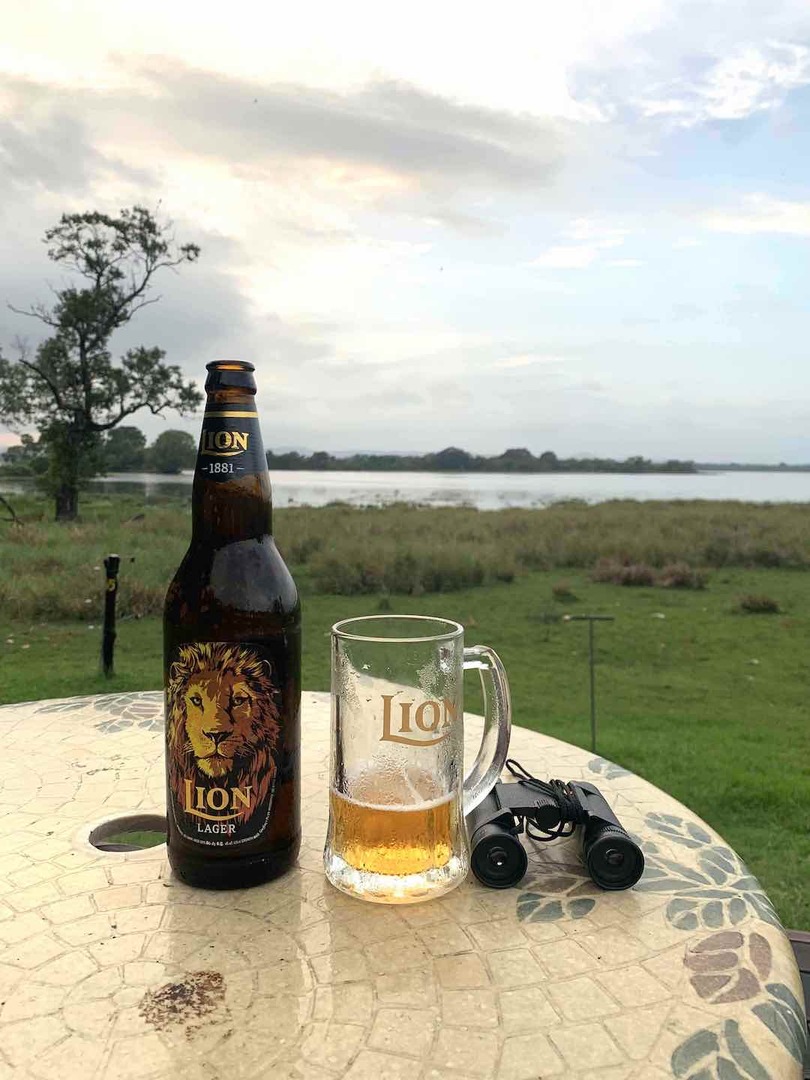 -Dans le nord du pays qui est beaucoup moins touristique, il n'est pas facile de trouver sa petite bière du soir ! Mon truc c'est de checker sur booking les hôtels de luxe un peu hors budget. Super bien accueilli, je tombe dans ce lodge au bord du grand lac. Je suis quasiment seul, je profite du coucher du soleil bière en main. Hallucinant spectacle ! Tous les soirs, les employés de l'hôtel chassent les chauves-souris géantes de l'arbre fruitier qui se trouve sur la terrasse. Et il les chassent comment ? À coups de feux d'artifice ! Je rigole bien. ( les volatiles sont habitué et reviennent presque aussi tôt !) ( The Lake Hotel Polonnâruvâ )