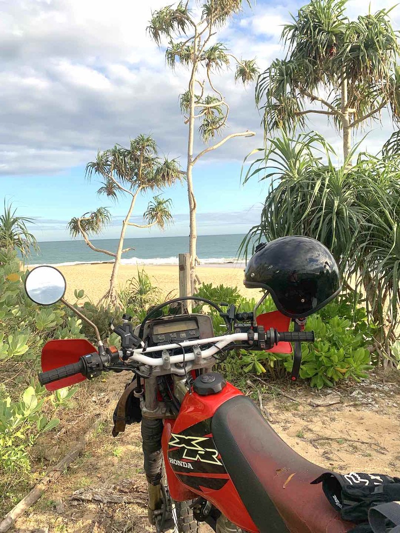 -Réveil à l'aube avec un bain de mer, un petit-déjeuner copieux et hop je saute sur ma moto.