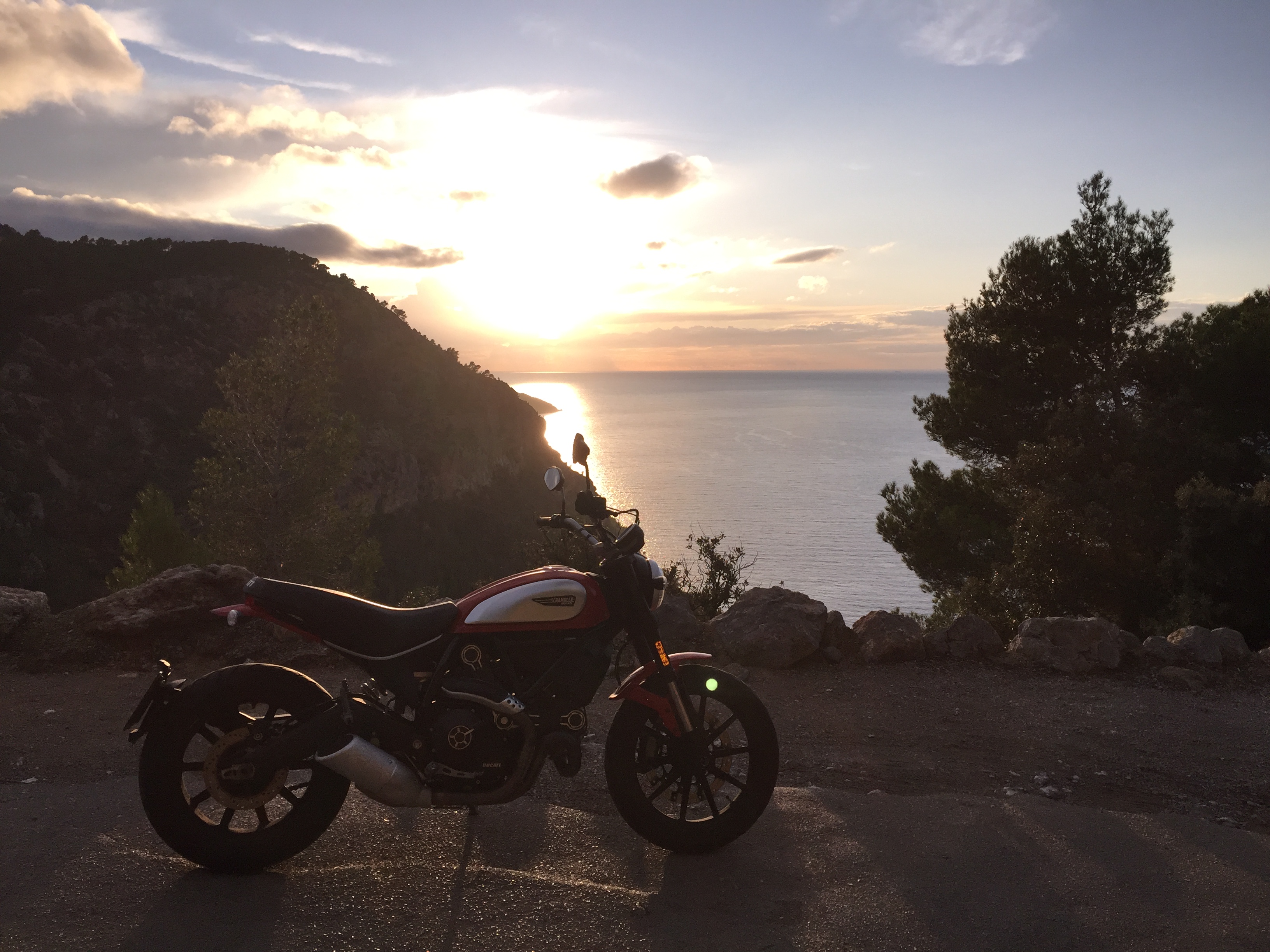 Le meilleur moment pour y aller, c'est en avril ou octobre. J'y suis allé en octobre. A ce moment de l'année, il y fait beau, suffisamment chaud, mais pas trop. Genre 18-25°C (prévoir un équipement mi-saison, prendre en plus une paire de gants été au cas où...). En plus, on est hors saison, alors il n'y a pas trop de touristes et les hôtels sont plus abordables. En plus des 2 jours de moto, prévois un jour ou deux pour visiter Palma (à pied...), il y a une cathédrale, un fort et d'autres trucs sympas.