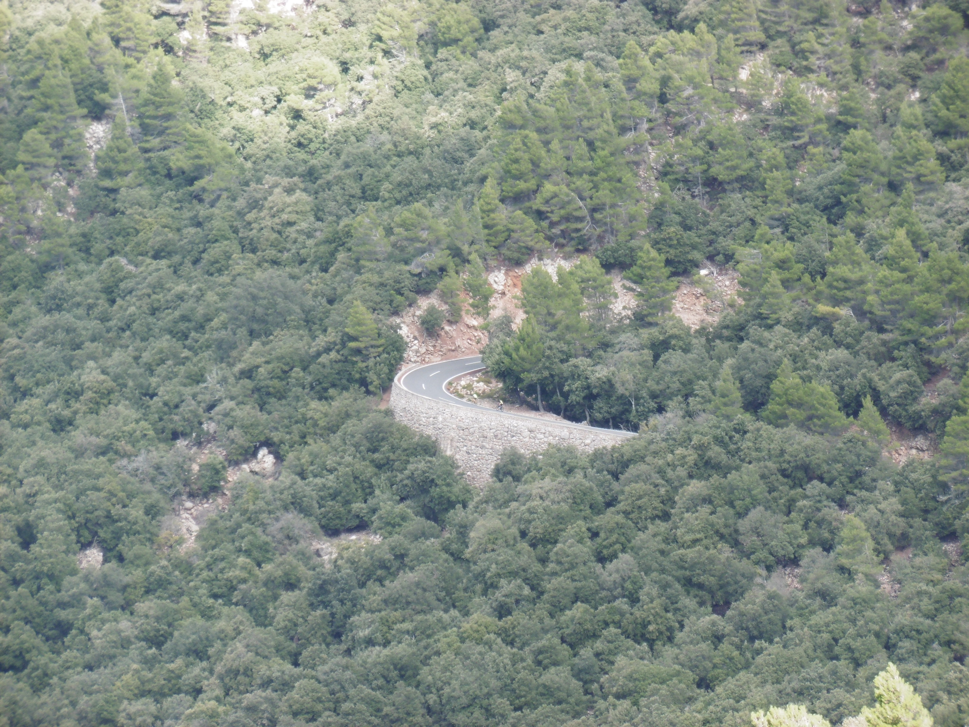 1/ Les cyclistes. Il y a en plein. Ce sont des sportifs qui viennent s'entraîner là, alors ils roulent vite (dans les descentes, moins dans les montées, haha!), ne serrent pas leur droite, parfois à plusieurs de front, et ne font pas attention aux motards qui arrivent derrière eux. Alors c'est à toi de faire attention.