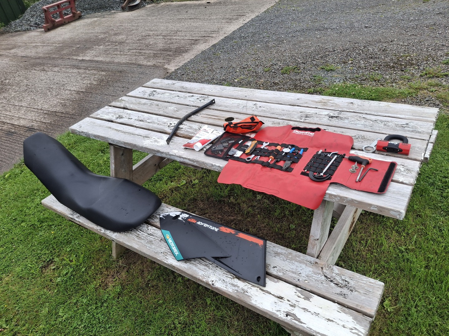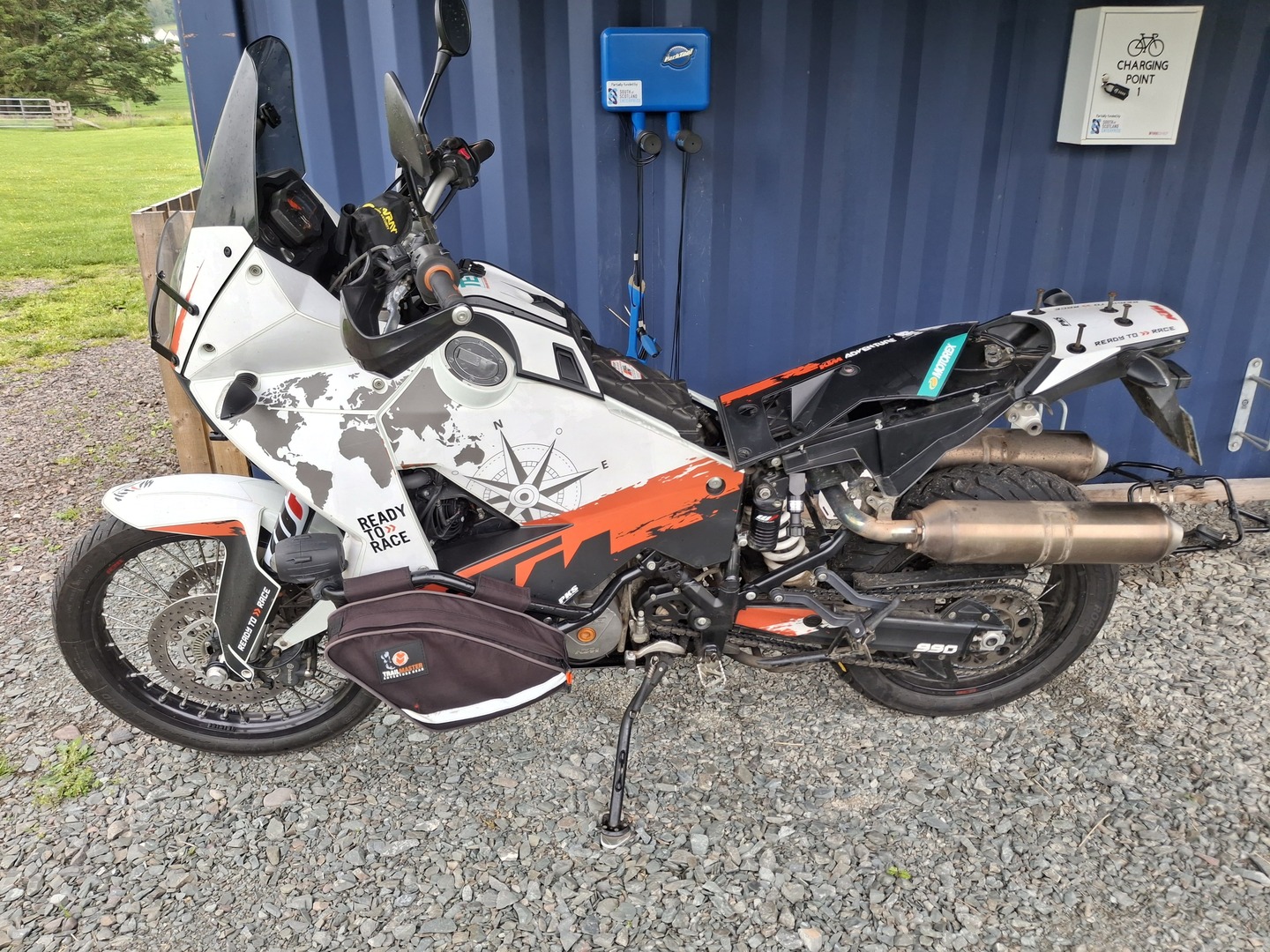 KTM 990 Adventure, équipée full Enduristan, et pneus Michelin Anakee road. Super pneus que je n'ai pas testés sous la pluie. C'est un comble quand même, on était en Ecosse.