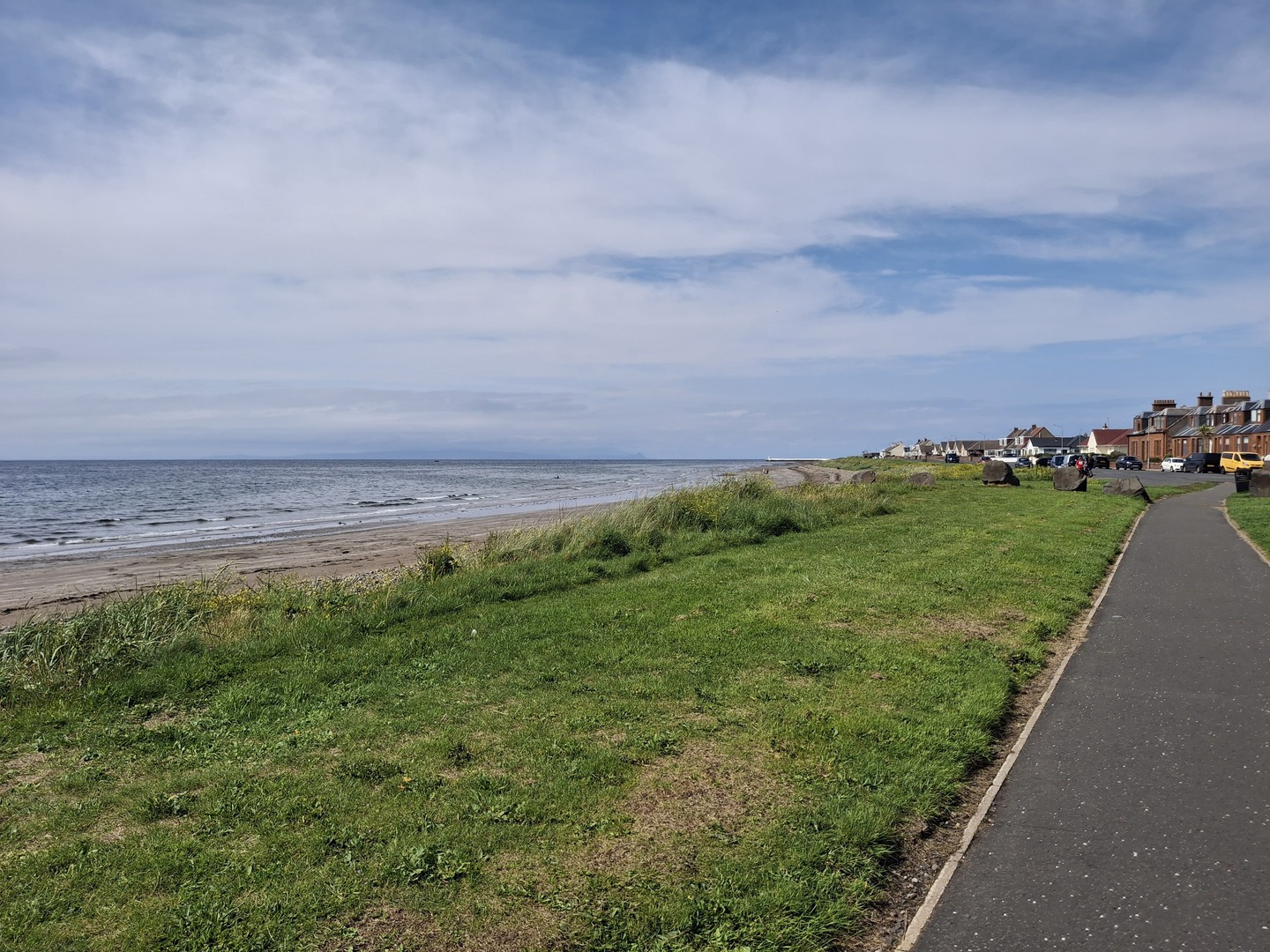 Je commence par réparer la KTM. En parallèle, My Love plie le campement. Premier vrai roulage en Ecosse en direction de Glasgow, sous quelques gouttes, on est quand même en Ecosse, la pluie fait partie du voyage. La trace te conduira sur le bord de «Firth of Clyde» à Girvan une petite ville que nous avons trouvée pas mal.