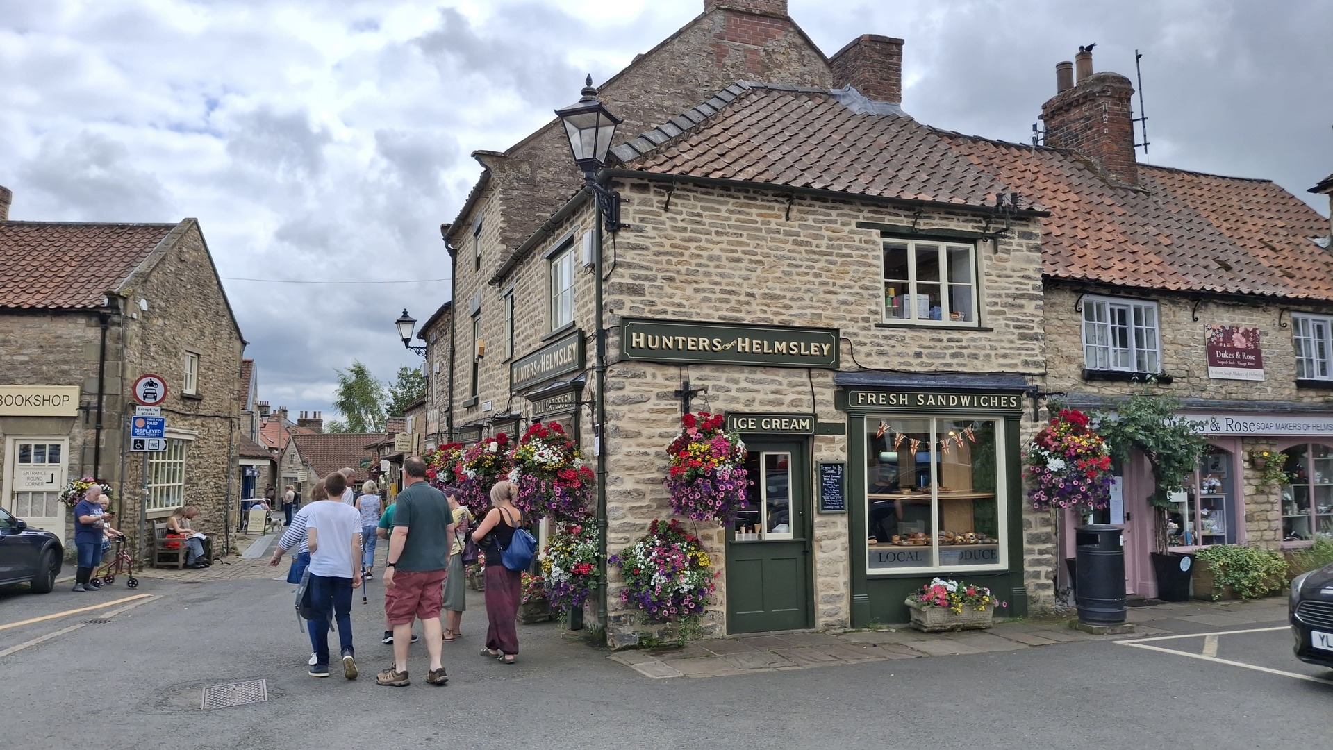 Je te recommande vivement de faire une halte à Helmsley, très beau village avec ses vieilles pierres. Juste un point important, paye le parking. Même à moto. Nous n’avons pas vu le panneau et heureusement que le policier a été cool et compréhensif. Il m’a laissé le temps d’aller régler le stationnement sinon c’est une amende. Nous étions sur le point de partir.