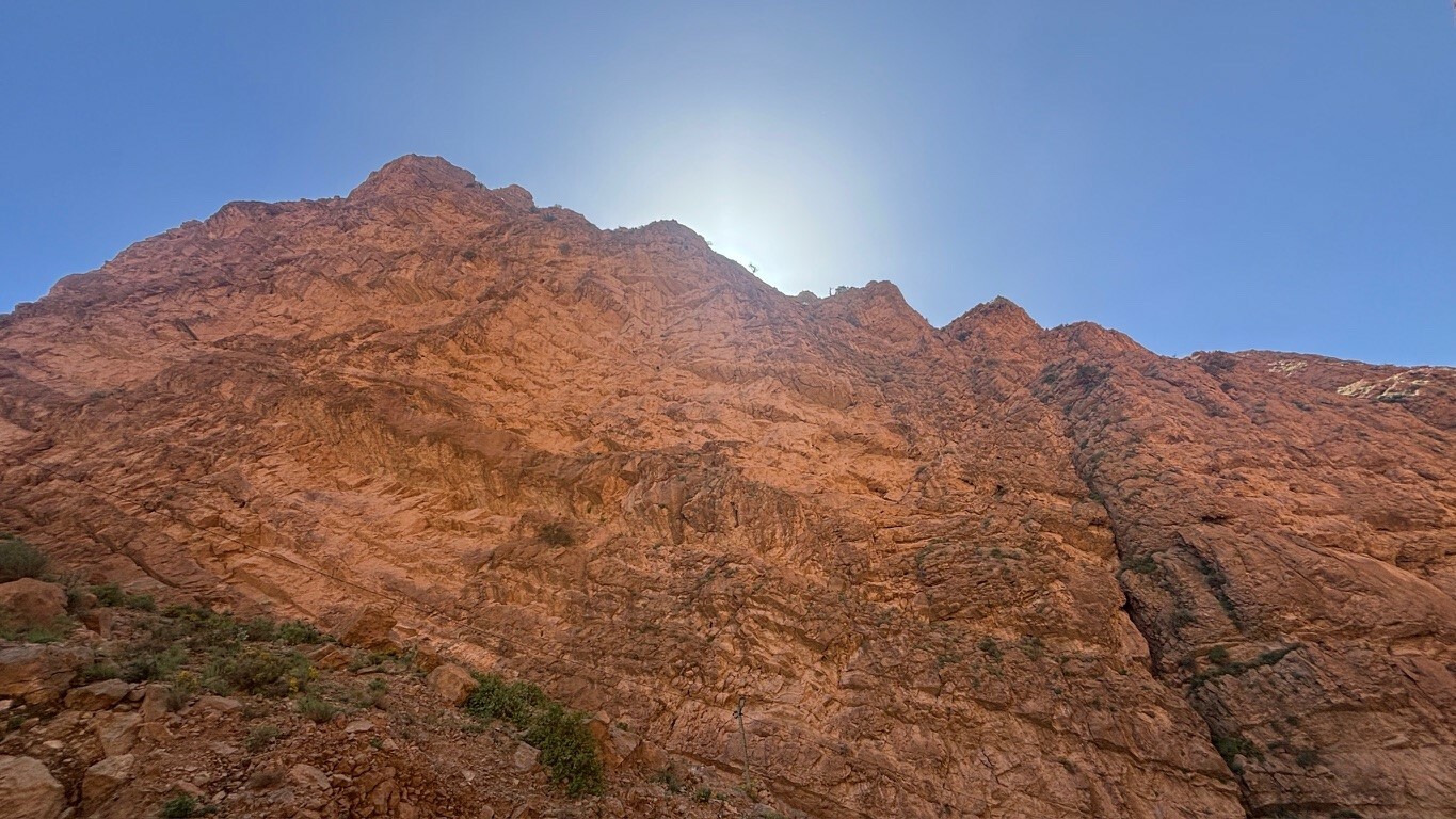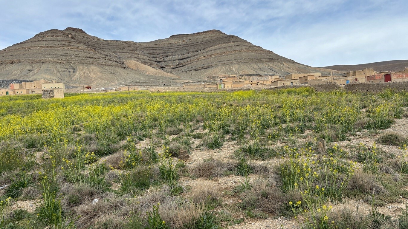 Arrivée à Bab boudir par une piste dans une plaine magnifique. 8 km pour rejoindre le gîte chez Rachid, berger qui vit sans eau courante mais accueille des randonneurs depuis 20 ans. Nuit sur une banquette dans un dortoir, dîner avec Rachid, pas de toilettes, pas de douche…