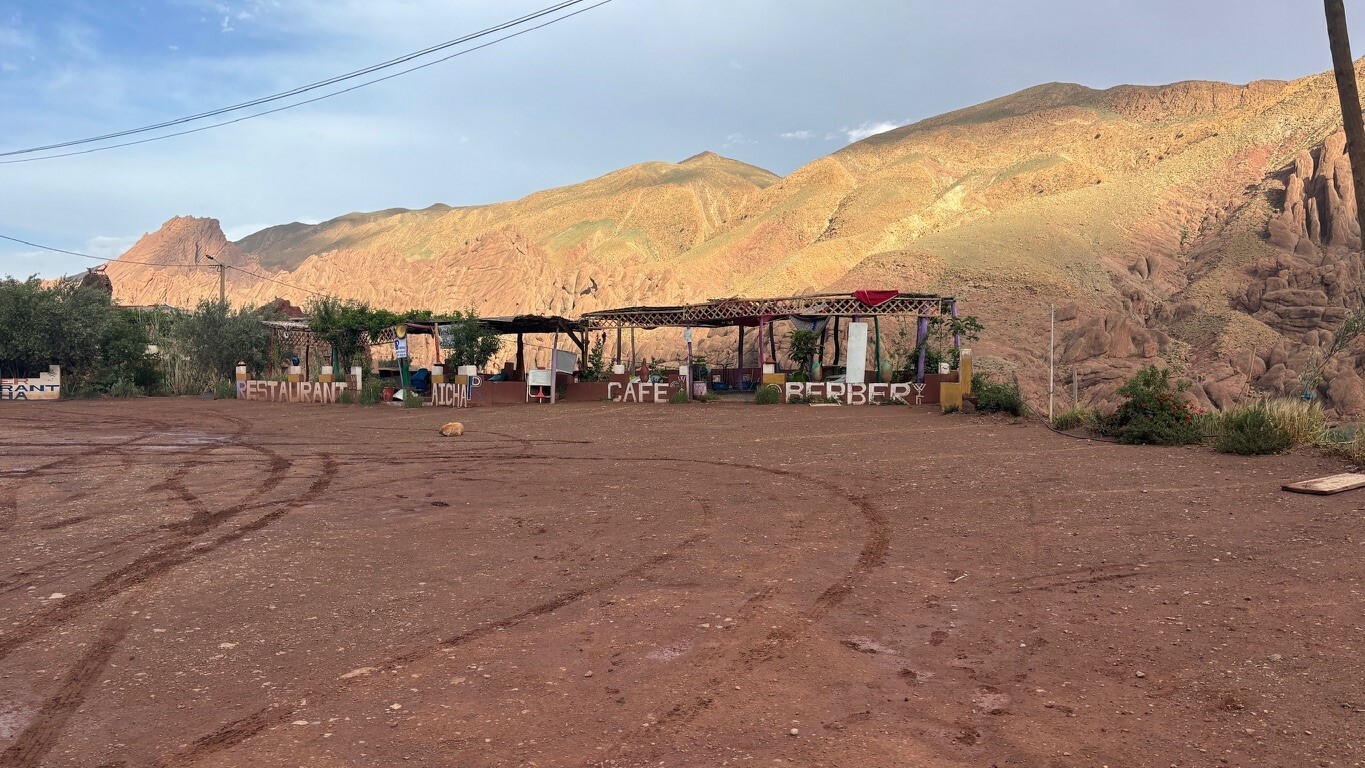 112 km par les gorges jusqu’à Tilmi puis la piste. Déjeuner à Kasbah les amis avec le propriétaire et ses 10 enfants.