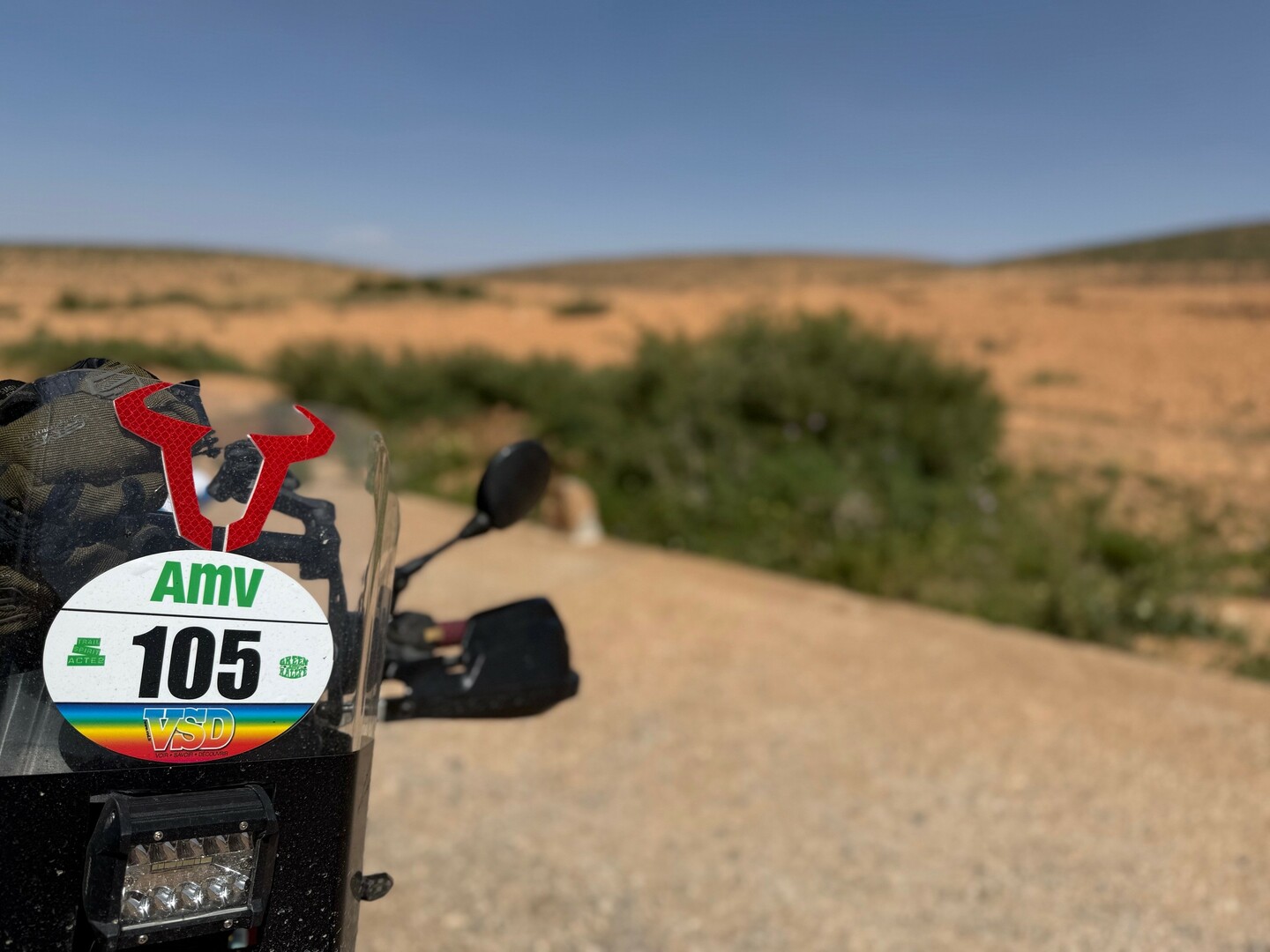 Check-point au milieu de nulle part : contrôle des passeports et photo des plaques des motos pour entrer dans la zone de l’énorme ferme solaire royale (qui est à plus de 100 km…).