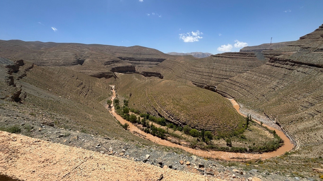 Départ de Midelt par la route le long des champs éoliens. Puis magnifique piste dans les gorges au milieu des anciennes mines.