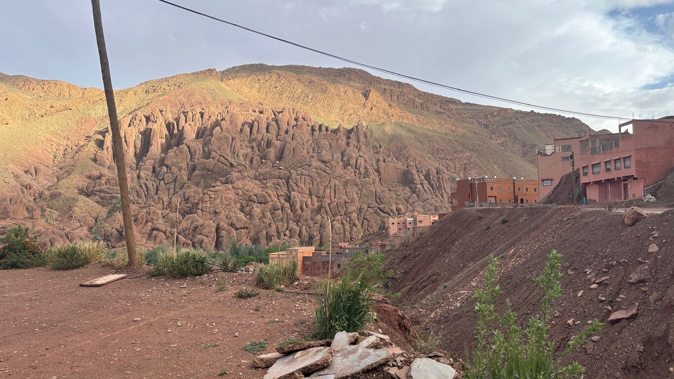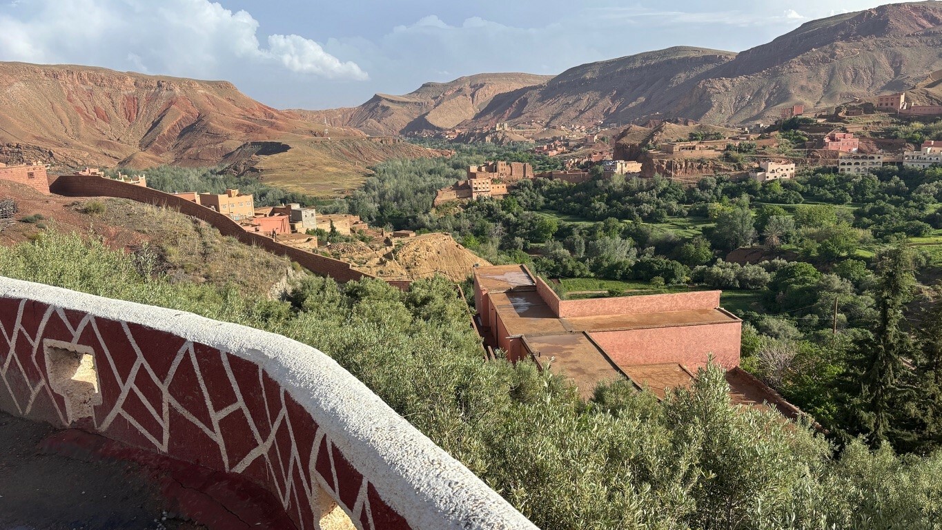 Arrivée à Skoura, gîte de montagne à flan de falaise avec des cascades. Rencontre sur place d’un ami de Guillaume Adeline (rencontré au mali il y a 8 ans - Couleurs d'Afrique).