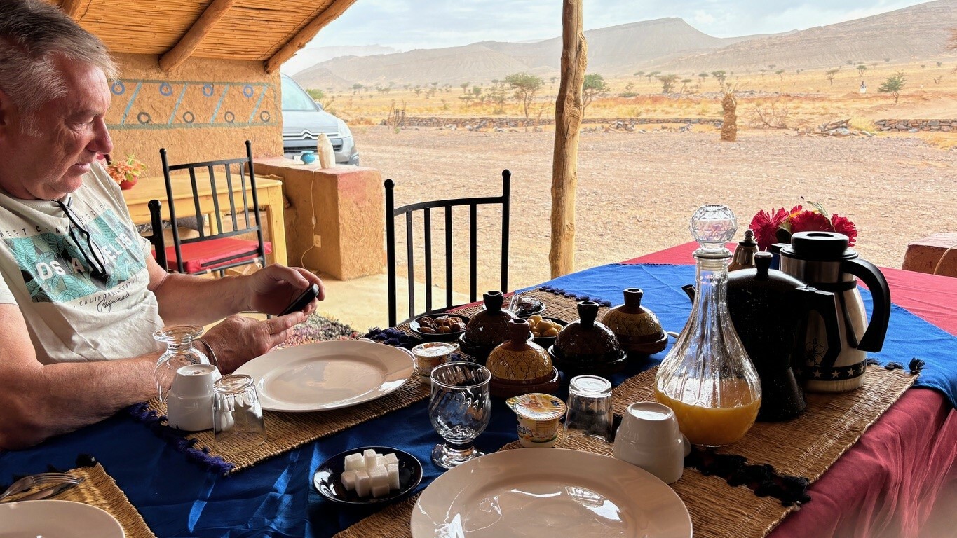 Départ par la piste de la Palmeraie, puis route. Déjeuner chez Ali : 4,5 € pour 2.