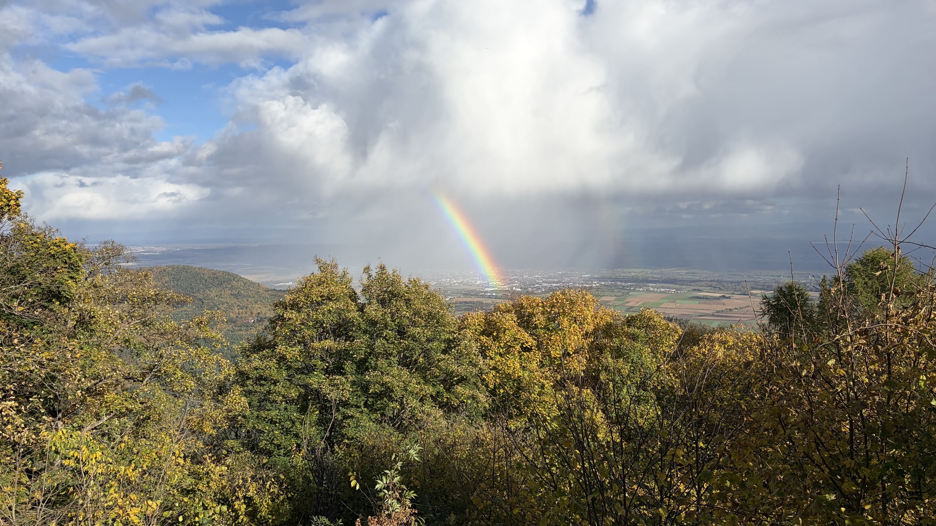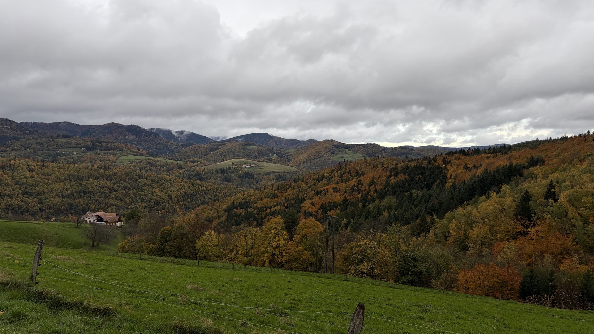 On reprend ensuite la route vers Munster — parce qu’un road-trip en France sans passer par une ville qui porte le nom d’un fromage, c'est pas un vrai road-trip. De là, on grimpe vers la station du Schnepfenried, avant d’atteindre le Grand Ballon, point culminant des Vosges à 1 423 m. Et là, Lolo avait raison : octobre, c’est pas pour les touristes. Entre les feuilles mouillées, le vent et la première robe de neige de la saison, la montée se mérite. Mais une fois au sommet, le panorama est juste magique — un vrai bol d’air pur et de satisfaction.