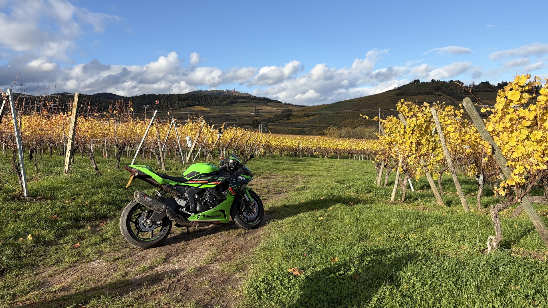 Un dernier regard vers les montagnes, un coup d’œil complice à la moto, et on sait qu’on vient de boucler deux jours de pur bonheur sur les routes d’Alsace et des Vosges.