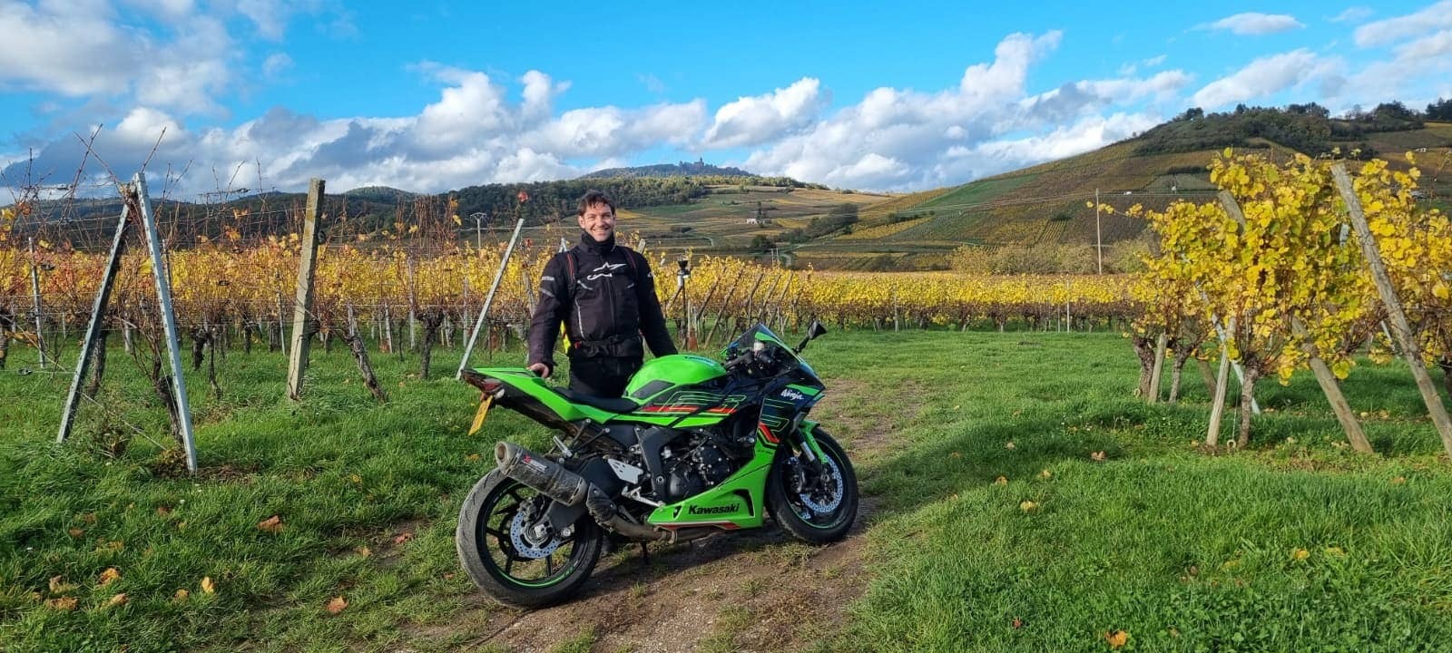 Et pour terminer cette première journée en beauté, on redescend tranquillement vers Colmar par la route de Soultz-Haut-Rhin — une petite route sinueuse comme on les aime, parfaite pour clôturer la journée avec le sourire sous le casque.