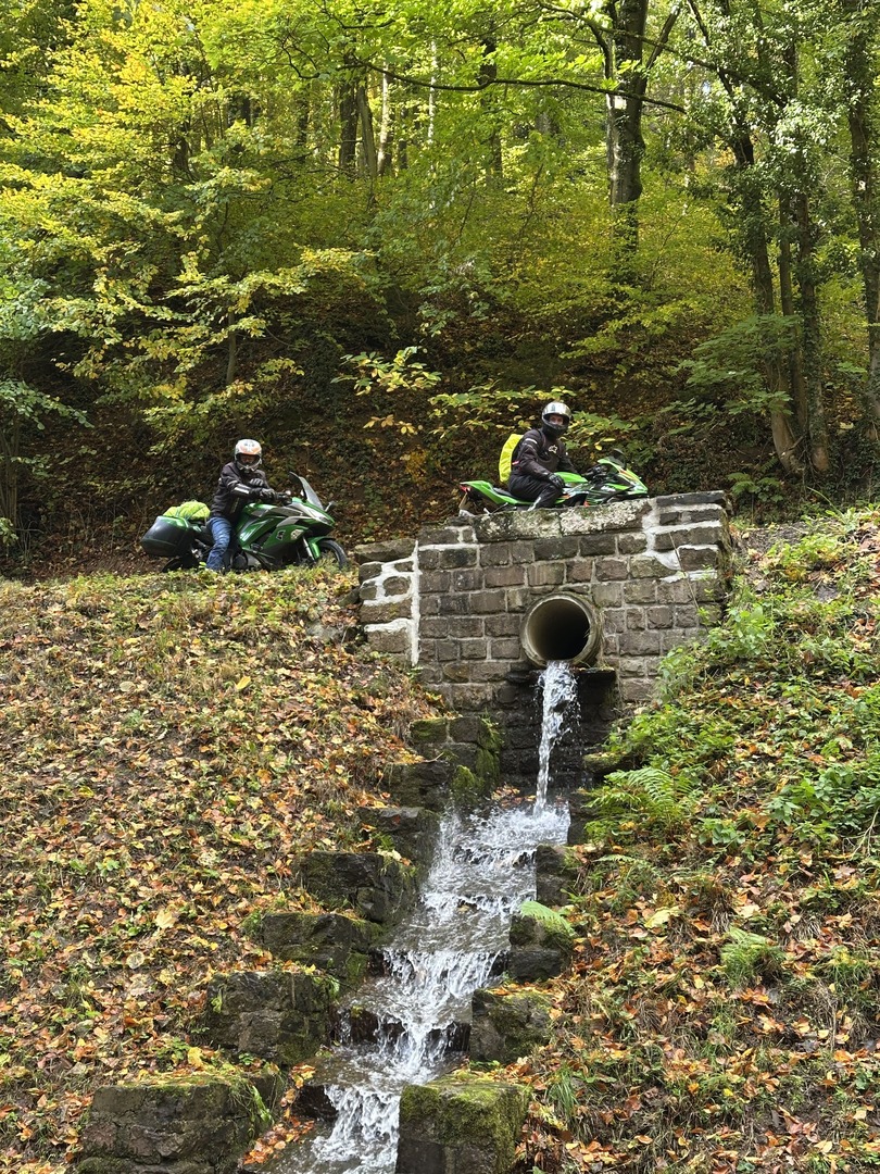 Arrivé à Saint-Maurice-sur-Moselle, on attaque la montée finale : celle du Ballon d’Alsace, à 1 247 mètres d’altitude. Là-haut, la vue se déploie sur les Vosges, la Forêt Noire, le Jura et la Trouée de Belfort. Enfin… en théorie, parce que nous, on avait littéralement la tête dans les nuages. Mais peu importe : même sans panorama, l’ambiance, la route et la satisfaction d’être arrivés au sommet valent largement le détour.