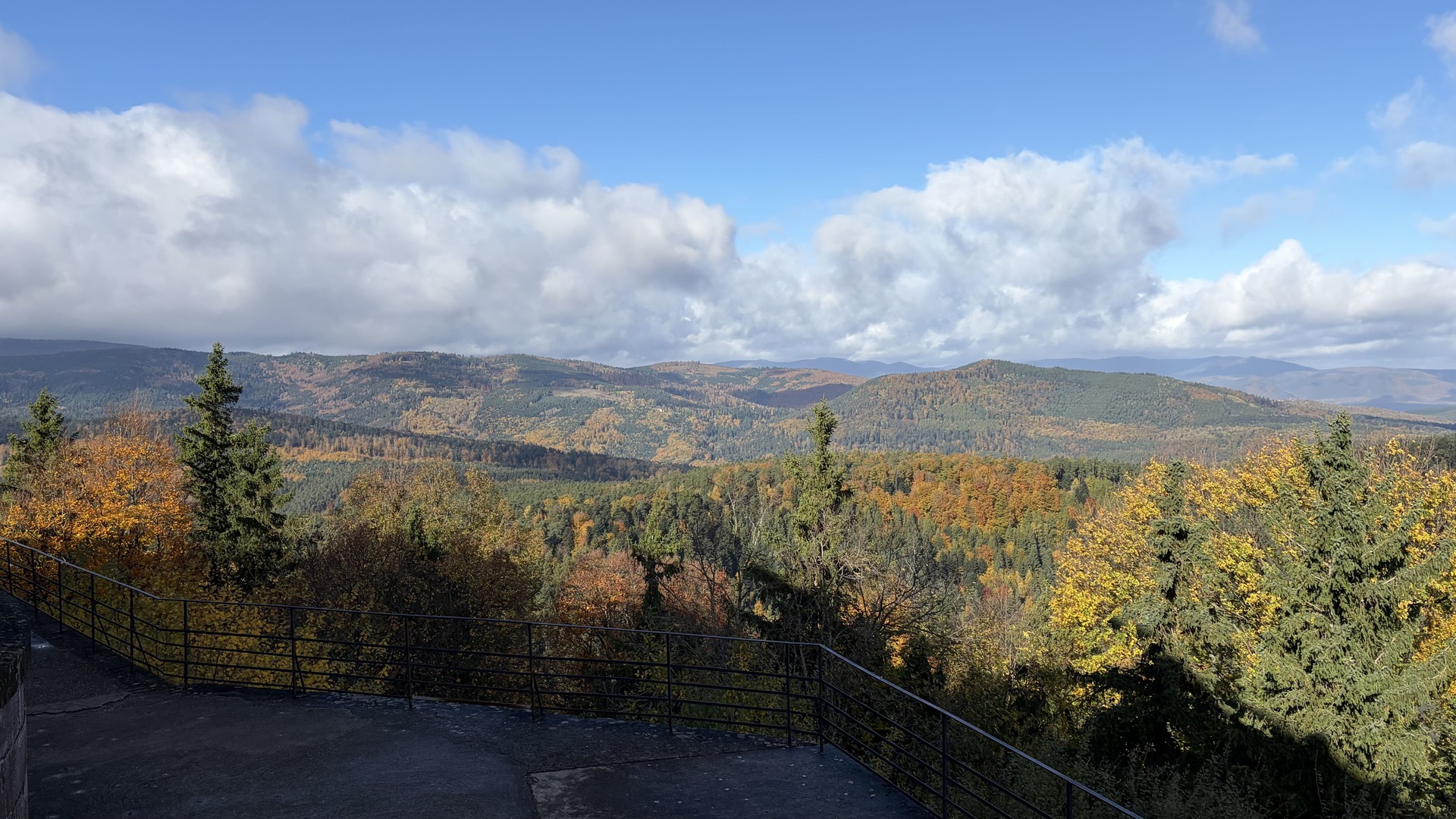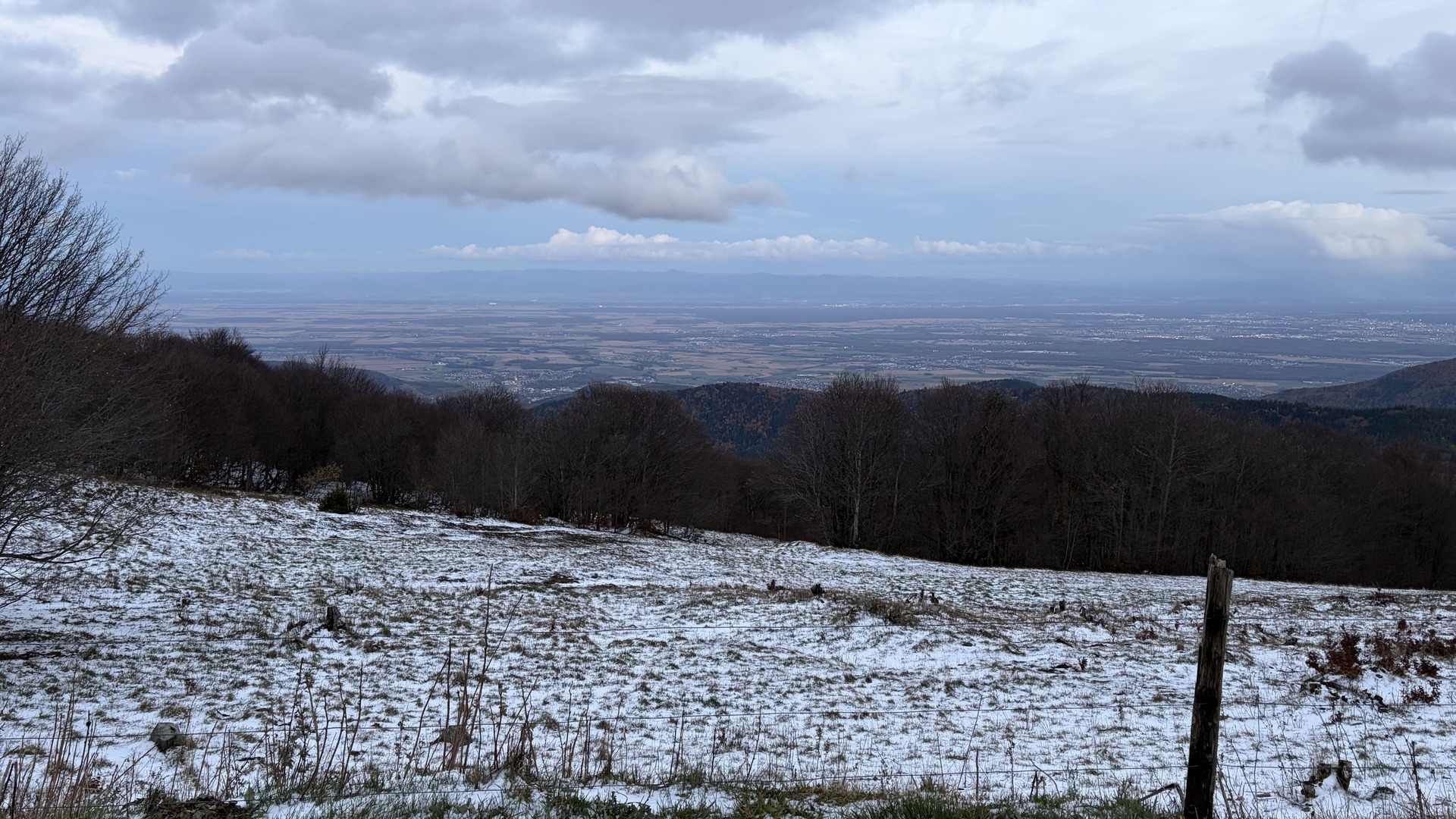 On reprend ensuite la route vers Munster — parce qu’un road-trip en France sans passer par une ville qui porte le nom d’un fromage, c'est pas un vrai road-trip. De là, on grimpe vers la station du Schnepfenried, avant d’atteindre le Grand Ballon, point culminant des Vosges à 1 423 m. Et là, Lolo avait raison : octobre, c’est pas pour les touristes. Entre les feuilles mouillées, le vent et la première robe de neige de la saison, la montée se mérite. Mais une fois au sommet, le panorama est juste magique — un vrai bol d’air pur et de satisfaction.