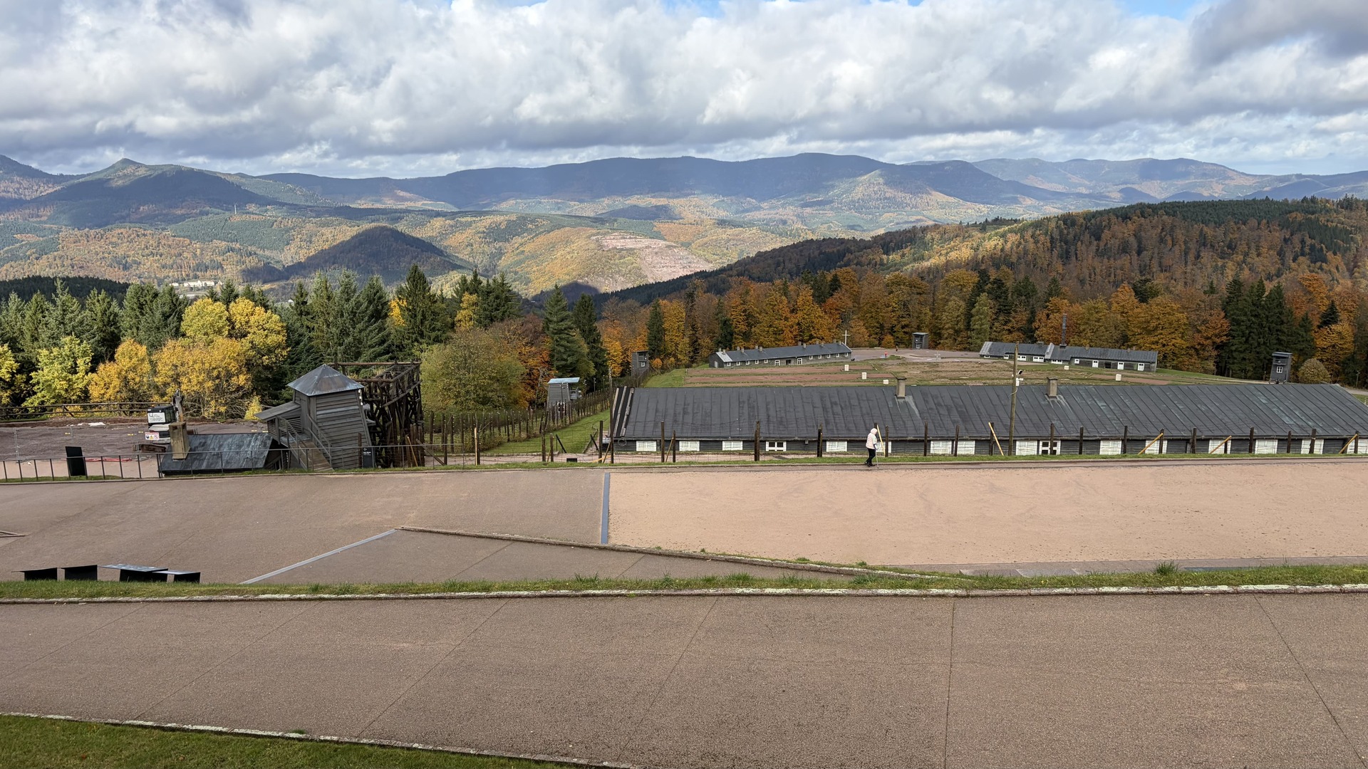 Sur la route du col de la Charbonnière, fais un détour de 6 km pour un moment plus solennel: le camp du Struthof, le seul camp de concentration en France. Un arrêt d'émotions, mais important. Arrivé au col, stop obligatoire à l’Auberge de la Charbonnière. Ambiance montagnarde, accueil au top et des phrases inspirantes sur les murs — et si je ne devais te recommander qu’un plat : le spare ribs. De quoi recharger les batteries avant l’après-midi qui s’annonce sportive.