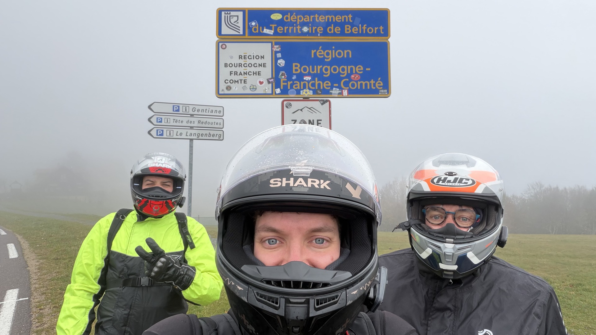 Arrivé à Saint-Maurice-sur-Moselle, on attaque la montée finale : celle du Ballon d’Alsace, à 1 247 mètres d’altitude. Là-haut, la vue se déploie sur les Vosges, la Forêt Noire, le Jura et la Trouée de Belfort. Enfin… en théorie, parce que nous, on avait littéralement la tête dans les nuages. Mais peu importe : même sans panorama, l’ambiance, la route et la satisfaction d’être arrivés au sommet valent largement le détour.